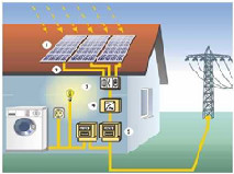 ◎白天使用太阳能电池板发电,满足自用电需求,多余电能给锂电池充电,或者输送给电网。